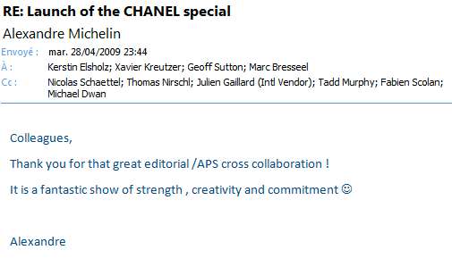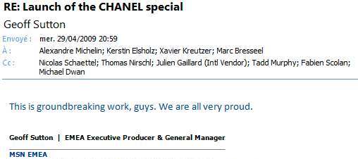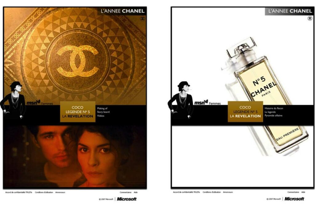 Ma plus importante réalisation chez Microsoft c’était les pages promotionnelles pour l’anniversaire de la marque Chanel. J’étais responsable pour l’analyse de la disposition des informations envoyées par les chef.fe.s de projet, le graphisme et l’intégration sur BedRock. Dû à son succès, cette campagne a été vendue par la suite à plusieurs pays comme les Pays-Bas, l’Angleterre et la Chine. Cette réalisation a été produite en suivant un cahier de charges avec des contraintes assez importantes – notamment concernant le temps de réalisation et une forte protection des droits d’image de Coco Chanel.