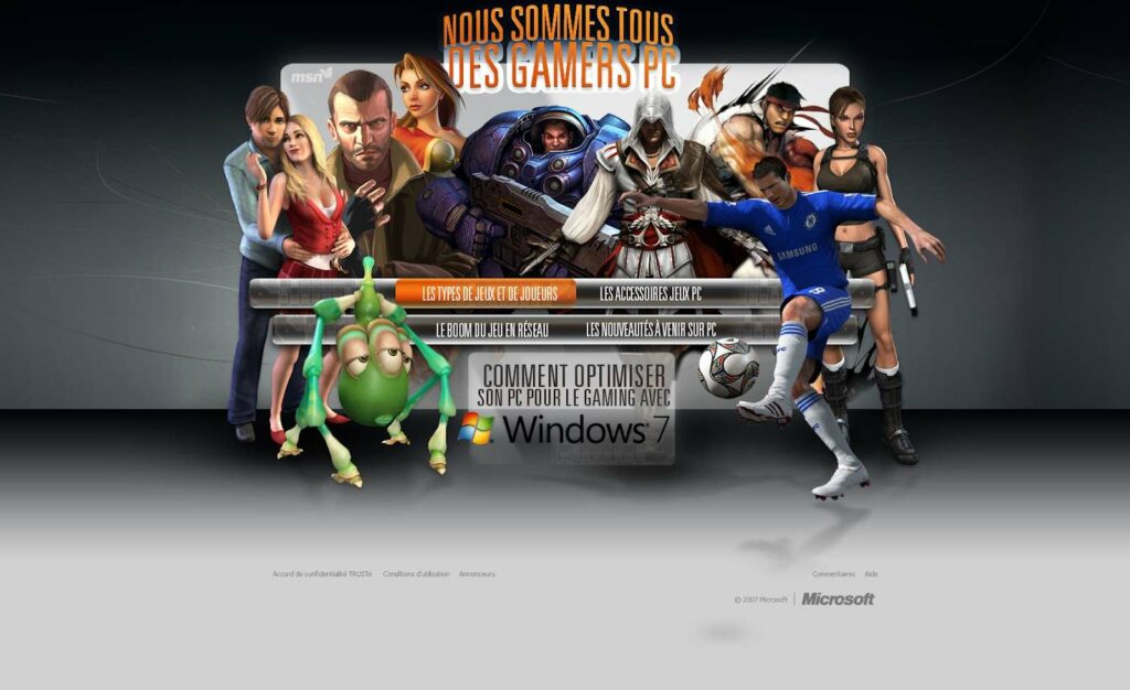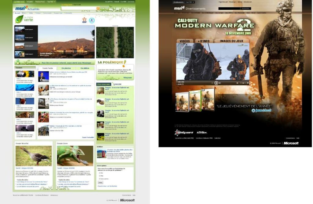 En 2006, j’ai intégré Microsoft comme webmaster. Au début, mon rôle était l’intégration en code, dans l’outil interne appelé BedRock, des maquettes dispatchées par les graphistes. C’était mon premier contact avec une équipe internationale qui produisait des campagnes pour des très grands comptes – un apprentissage autodidacte à grande vitesse qui m’a permis de comprendre la chaîne complète de création d’un support numérique. Grâce à l’énorme turn-over dans l’équipe, j’étais rapidement amené à produire mes propres maquettes graphiques tout en suivant les contraintes des marques et du propre outil BedRock. Au sein de cette équipe, nous composions des landings, pages promotionnelles (pour des jeux-vidéos, séries télé, films) ou la mise en forme personnalisée des chaînes du portail MSN. Comme l’habillage de la chaîne Femmes au moment de la FashionWeek ou la chaîne Sport pour Roland-Garros.