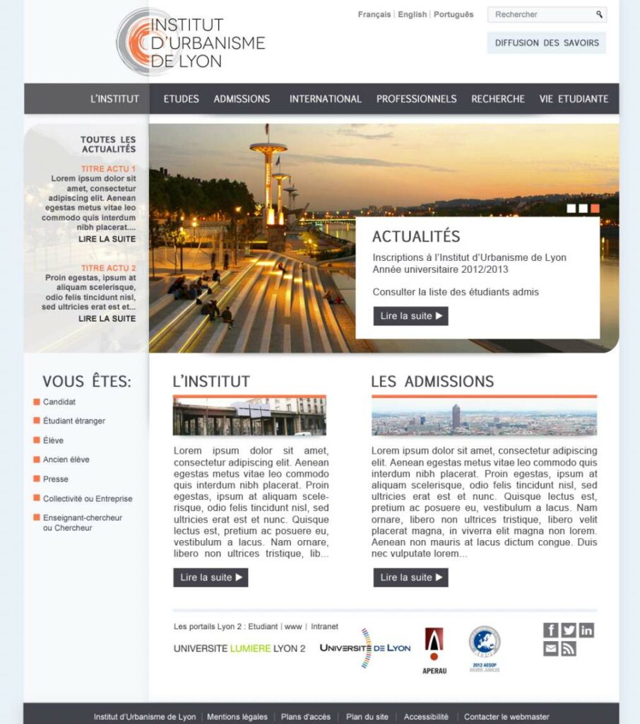 Le premier projet qui a inauguré cette nouvelle façon de réfléchir était le site IUL (Institut d’Urbanisme de l’université Lyon 2). J’ai géré ce grand projet depuis l’étude utilisateur jusqu’au livrable clé en main : un site très complexe et fait sur mesure en partant du CMS WordPress.